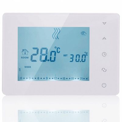 Rádiós termosztát elegáns, hófehér 100 méter hatótáv nagy érintőképenyős LCD kijelzővel kazán ki-be kapcsolásához