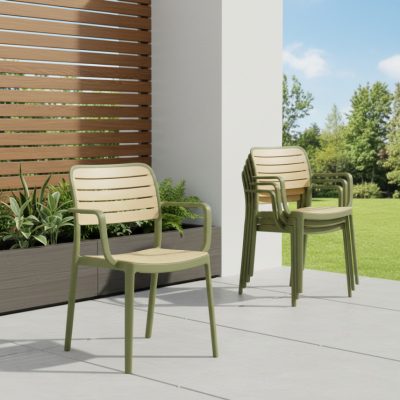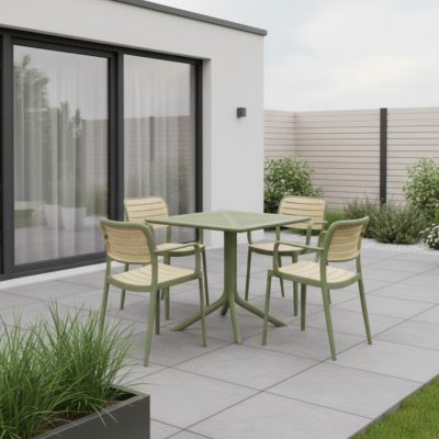 A KARDOS TYP 2 rakásolható szék modern dizájnnal és praktikus kialakítással tökéletes választás a kényelmes kerti ülésekhez. A zöld és bézs színkombináció elegánsan illeszkedik bármilyen kültéri környezethez, miközben a rakásolható funkció helytakarékos megoldást nyújt. Ideális választás kerti partikhoz vagy hétköznapi használatra.