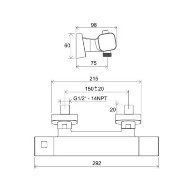 • RAVAK 10° Free TD F 033.00/150 termosztátos zuhany csaptelep zuhanyszett nélkül