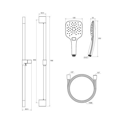 Klasszikus összeállítás, amely magába foglalja a zuhanytartó rudat, Air kézi zuhanyfejet és az optimális hosszúságú gégecsövet.