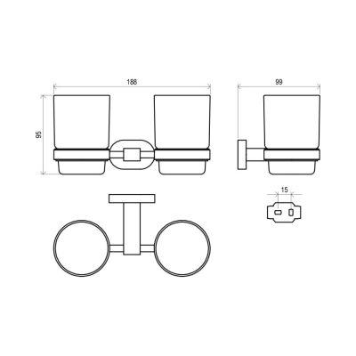 RAVAK Chrome CR 220.00 üveg pohártartó 2 pohárral
