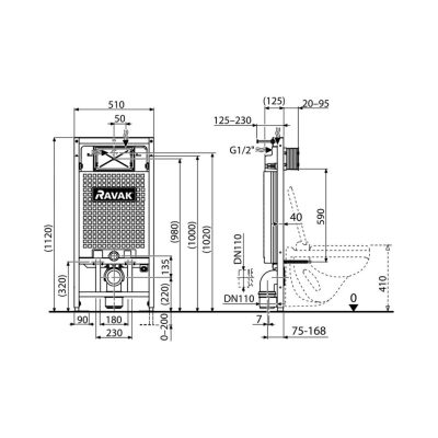 • RAVAK G II/1120 beépíthető WC tartály szerelőkerettel