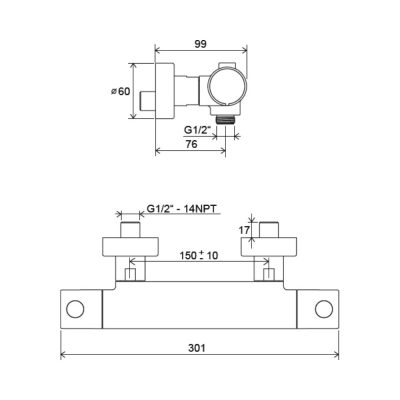 RAVAK Puri PU 033.00/150 termosztátos zuhany csaptelep zuhanyszett nélkül
