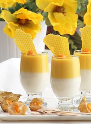 • Desszerthez: rétegzett panna cotta, mousse, pohárkrém, joghurt gyümölccsel