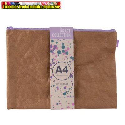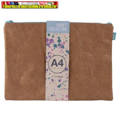 • Rendszerező tasak, cipzáras, bőrhatású textúra, műanyag, A4, APLI "Kraft", vegyes színű cipzárral