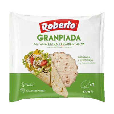 Ez a termék, a Roberto Piadina olívaolajjal, egy készen kapható változata a piadinának, amely kényelmes és könnyű alternatívát kínál az otthoni elkészítéshez képest. A kenyér puha és rugalmas textúrájú, és a benne lévő olívaolaj gazdag ízt ad neki.