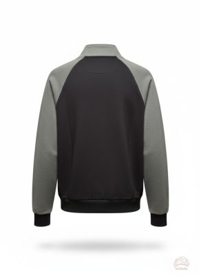 Kéttónusú kivitel: Elegáns antracitszürke ujjak és gallér kontrasztos mélyfekete testrésszel a dinamikus és sportos megjelenésért.
