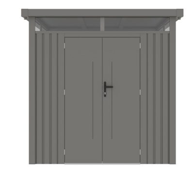 Az ANNA kerti ház rendelkezik kétszárnyú ajtóval, amely zárható, így biztonságosan tárolhatja értékeit és eszközeit. Az ajtó magassága 178 cm, ami elegendő teret biztosít a kényelmes be- és kilépéshez. A tető kiváló minőségű, 0,4 mm vastag acéllemezekből készült, és egy erős, 0,5-1,2 mm vastag horganyzott acélváz tartja. Ez a szerkezet garantálja a ház hosszú élettartamát és ellenállóságát a különböző időjárási viszontagságokkal szemben.