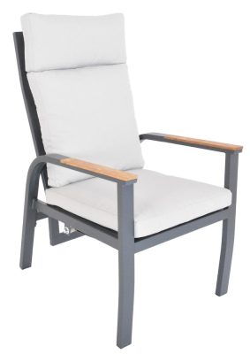 Fedezze fel a modern dizájnt és a páratlan kényelmet a luxus alumínium foteleinkkel, melyek elegáns grafit színben és teakfa karfákkal kaphatók! Ezek a fotelek ideális választást jelentenek mind a beltéri, mind a kültéri terekhez, beleértve kerteket, teraszokat és télikerteket.