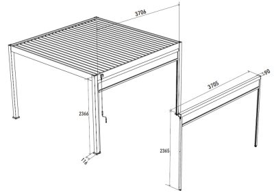 A pergola fix vagy dönthető vízszintes lécekkel ellátott árnyékoló panelekkel is kiegészíthető a további magánélet és árnyékolás érdekében. A pergolák kiegészítői bármikor beszerelhetők, már a pergola beépítésekor nem szükséges összeszerelni.