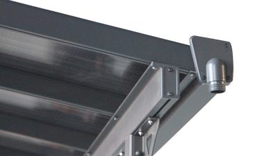 A pergola konstrukciója alumínium profilokból és 6 mm vastag polikarbonátból készül, amelyek együttesen egy stabil és robusztus szerkezetet alkotnak. A polikarbonát tető 100% -os UV védelmet nyújt, így Ön és családja biztonságban élvezheti az árnyékot és védelmet a káros napsugaraktól.