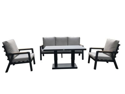 Ez a ROJAPLAST bútor garnitúra a luxust és a funkcionalitást ötvözi. A grafit színű alumínium váz elegáns és időtlen, míg a teakfa karfák és asztallapok természetes szépséget hoznak a készletbe. Az egyszerű, mégis modern dizájnja ideális választás minden otthonba.