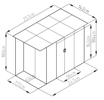• Rojaplast Chester "A" fém kerti ház, tároló szürke - 257 x 142 x 184 cm