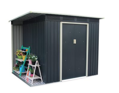 Ez a kerti ház kiemelkedik a tervezésében is. Modern kialakításának köszönhetően bármilyen kertbe könnyedén illeszkedik, és esztétikailag is vonzó. A fém szerkezetű ház rendelkezik egy praktikus oldaltetővel, ami további védelmet nyújt a tartalmaknak az eső, hó vagy napsütés ellen. Az oldalsó részt akár fatárolásra vagy virágok elhelyezésére is használhatja, így sokféle módon kihasználhatja ezt a kerti tárolót.