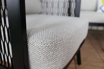 anyag fekete alumínium szerkezet, 12 cm magas párnák, fonott szövet (poliészter 460 g/m2), vízlepergető anyag