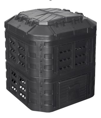 - Anyag: A komposztáló szilárd és tartós, polipropilénből készült. Ez az anyag ellenáll az extrém időjárási viszonyoknak és az UV sugárzásnak, így kiválóan alkalmas szabadtéri használatra, akár -30°C és 45°C közötti hőmérsékleti tartományban.