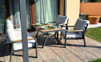 Fedezze fel a stílus és a funkcionalitás tökéletes kombinációját a luxus alumínium étkezőasztalunkkal, grafit kivitelben, teakfa asztallappal. A prémium anyagok és a modern dizájn révén ez az étkezőasztal ideális választás mindenféle környezethez, legyen szó belső vagy kültéri használatról.