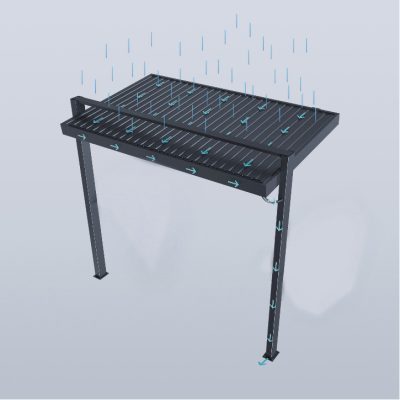 A víz elvezetését egy egyedi integrált vízelvezető rendszer biztosítja közvetlenül a szerkezeten belül . A lécek valóban nagy mennyiségű víz elvezetésére képesek. A téli hónapokban a léceket függőleges helyzetben kell hagyni.