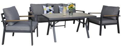 anyag grafit alumínium szerkezet, asztallap alumínium és AH02 gyanta, sötétszürke párnák fonott anyagból (poliészter)