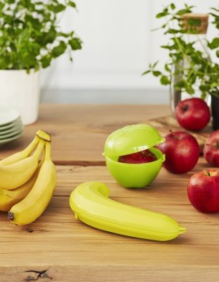 A minőségi műanyagból készült banántartó doboz nagyon praktikus, hiszen a benne tárolt banán nem fog megsérülni a szállítás közben. Könnyen nyitható és zárható. BPA-mentes és mosogatógépben mosható.