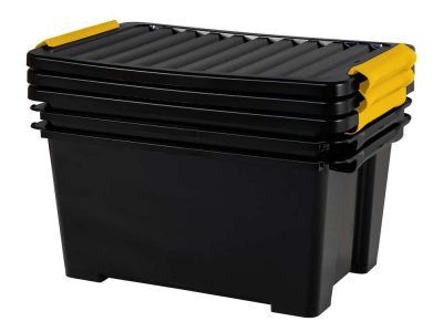 A strapabíró műanyag kivitel hosszú élettartamot biztosít, míg a fedél sárga rögzítőfülekkel stabilan zárható, így a tartalom védve marad.