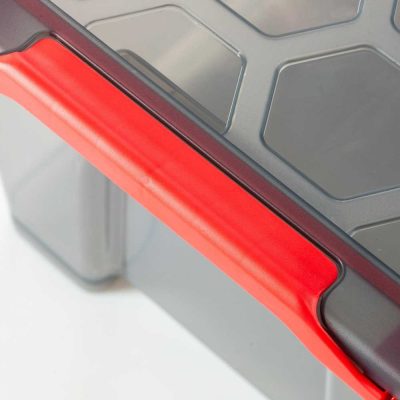 Az EVO TOTAL tároló doboz minőségi műanyagból készült, amely rendkívül tartós és ellenáll a kopásnak, így hosszú élettartamot biztosít. Az antracit/piros színkombináció elegáns és stílusos megjelenést kölcsönöz ennek a doboznak, amely nemcsak praktikus, hanem esztétikailag is vonzó.
