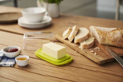 A minőségi műanyagból készült vajtartó dobozban higiénikusan tárolhatja a vajat. BPA-mentes, mosogatógépben mosható.