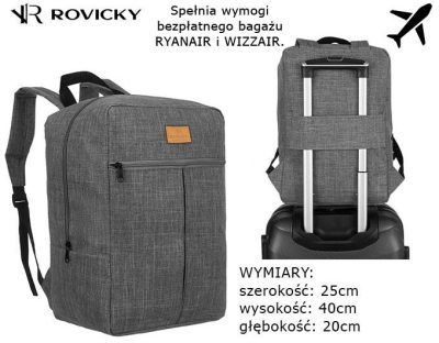 • Rovicky szürke ingyenesen felvihető kézipoggyász hátizsák