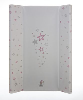Rózsa Csillag – merev peremes pelenkázólap 70×50 cm, fehér alapon szürke és rózsaszín csillagokkal
