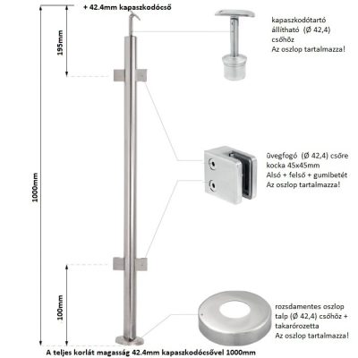 Csak laminált(VSG) üveget lehet szerelni korlátnak. Ennél az oszlop típusnál a javasolt üveg magasság: 798 mm