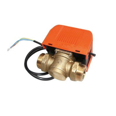 Rugós visszahúzású kétjáratú motoros szelep 1" KK külső menet kétutas zónaszelep 230V Feszültségre vált, hiányában visszaáll magától