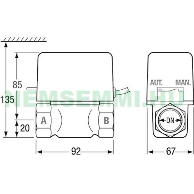 • Rugós visszahúzású kétjáratú motoros szelep ¾" BB belső menet kétutas zónaszelep 230V Feszültségre vált, hiányában visszaáll magától