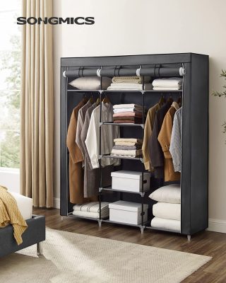 • Tedd bele ruháidat: Akaszd fel ruháidat a szövetszekrény 2 rúdjára rendezett sorban.Az összehajtott ruhákat helyezze a polcokra.Amikor egy nagy napra ki kell választanod a ruháidat, minden, ami van, a keze ügyében van