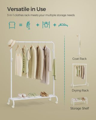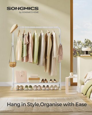 SONGMICS Megjegyzések:Kérjük, ne terhelje túl. Ha a ruhatartó terhelve van, ajánlott lassan mozgatni egy másik személy segítségével a hosszabb élettartam érdekében.