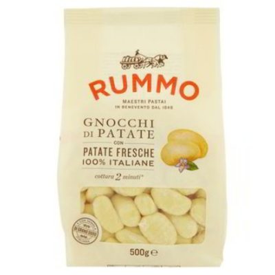 Rummo burgonyás gnocci, 500 g, Összetevők: friss burgonya 80%, durumbúza búzadara 10%, Burgonyakeményítő 6,5%, rizsliszt 1,5%, Só 1,4%, Savanyúságot szabályozó anyag: 0,45% tejsav, Tartósítószer: 0,08% szorbinsav, Természetes aroma 0,06%, kurkuma 0,01% Figyelem : egyes összetevők allergiát vagy intoleranciát okozhatnak. Nyomokban tartalmazhat: Szója, Búza, Tápanyag-információ 100g: Energia: 664 kJ / 159 kcal, Zsír: 0,4 g, ebből telített zsírsavak: 0,1 g, Szénhidrát: 33 g, ebből cukrok: 0,1 g: Rost: 1,6 g, Fehérje: 5 g, Só: 1,4 g Minőségét megőrzi a csomagoláson feltüntetett időpontig (nap/hó/év) , Tárolás: Hűvös, száraz, helyen tartandó , Származási ország: Olaszország , Forgalmazó: Milis Faplusz Kft 8092 Pátka Gárdonyi u.36