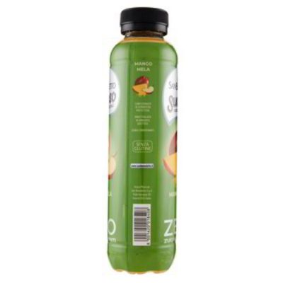 San Benedetto almás, mangós cukormentes gyümölcslé, 400 ml. Átlagos tápérték 100ml termékben: Energia: 72 kJ/17 kcal, Zsír: 0 g, ebből telített zsírsavak: 0 g, Szénhidrát: 3.6 g, ebből cukrok: 3.1 g, Fehérjék: 0.2 g, Só: 0.01 g, Összetevők: Ásványvíz 73%, gyümölcslevek 25% (mangópüré 15%, almalé koncentrátum 10%), savanyító: citromsav, antioxidáns: aszkorbinsav, édesítőszerek (nátrium-ciklamát, szukralóz), stabilizátor: e1450, aromák, színezék: béta karotin, természetes cukrokat tartalmaz, hozzáadott cukrokat nem tartalmaz. Minőségét megőrzi a csomagoláson feltüntetett időpontig. Hűvös, száraz helyen, napénytől és hőtől távol tárolandó. Felbontás után a termék 2-3 napig eltartható a hűtőben. Fogyasztás előtt rázza fel az üveget. Származási ország: Olaszország. Forgalmazó: Milis Faplusz Kft., 8092 Pátka, Gárdonyi u. 36