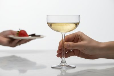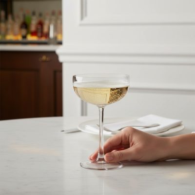 • Forma: klasszikus pezsgős csésze (coupe)