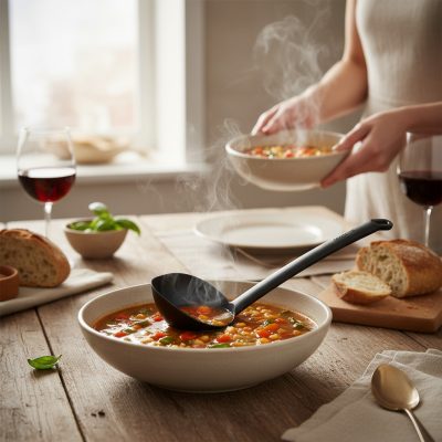 A sarokkialakítás lehetővé teszi, hogy az edények sarkából is hatékonyan kimerhető legyen a tartalom, így kevesebb veszteség, gyorsabb munka és tisztább tálalás érhető el. Ez különösen fontos professzionális konyhákban, büfékben és catering környezetben.