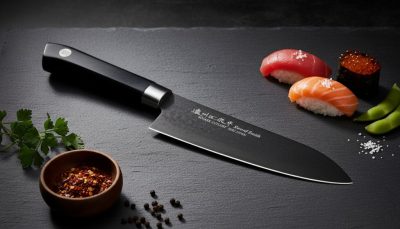 • Satake Sword Smith Titan Santoku szakacskés 17 cm-es fekete pengével