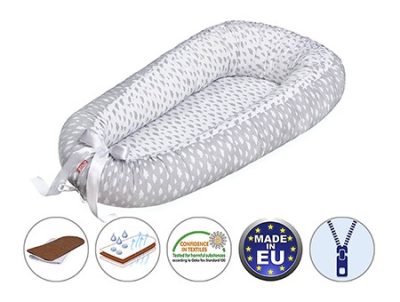 - Kiságyban betétként. Az újszülött gyerekeknek nagy és tágas a kiságy, ezért sokkal biztonságosabban érzik magukat a babafészekben, mivel körbeöleli őket.