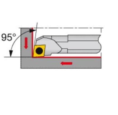 Átmenő furatok készítéséhez a 95° -os, CCMT06 lapkához való váltólapkás furatkést ajánljuk