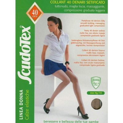 Selyemszálas, fényes, sima kötésű, 40 den-es visone (testszínű) , mokka vagy fekete színű harisnyanadrág, enyhén kompressziós 7-9Hgmm
