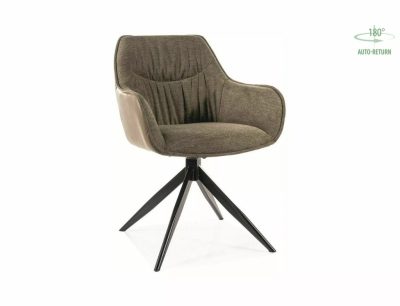 A Sempre Brego forgószék tökéletes kombinációja a modern dizájnnak és a funkcionalitásnak. A szék olíva színű szövet és műbőr kárpitozással készült, amely harmonikusan illeszkedik a matt fekete fém vázhoz. A szék különlegessége a 180 fokos forgási képesség és az automatikus visszatérési funkció, amely praktikus használatot biztosít.