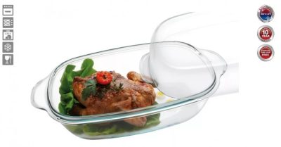 • Hőálló Simax üveg: A kiváló minőségű Simax üvegellenáll a -40°C és +300°C közötti hőmérsékletnek, így biztonságosan használható sütőben, mikrohullámú sütőben, hűtőszekrényben és fagyasztóban is. Az üveg egyenletes hőelosztást biztosít, ami garantálja az ételek egyenletes átsülését vagy főzését.