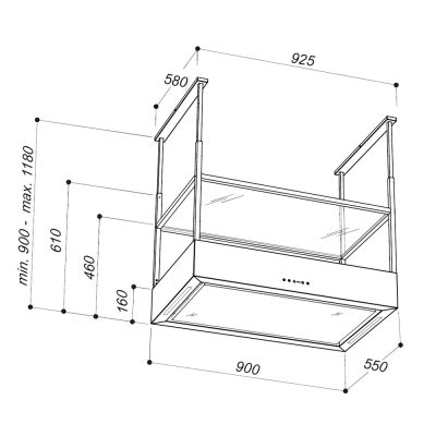 A Symphony egyik különleges előnye, hogy a 90 cm széles funkcionális modul egy további polcmodullal is bővíthető, így a teljes szélesség akár 180 cm is lehet. Ezeken a polcokon kényelmesen elhelyezhetők a főzéshez szükséges apró kiegészítők, fűszerek vagy dekoratív elemek. A füstös üvegpolcok nemcsak praktikus tárolófelületet biztosítanak, hanem tovább erősítik a készülék prémium megjelenését. Ez a bővíthetőség lehetővé teszi, hogy a páraelszívó valóban a konyha központi, jól kihasználható elemévé váljon. A funkcionalitás és az esztétika ebben az esetben tökéletes összhangban jelenik meg.