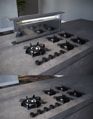 A 84 cm-es szélesség 90 cm-es minimális szekrényméretben pultba építve kiválóan illeszkedik a modern és klasszikus konyhákba egyaránt. A távirányítóval szinte a konyha bármely pontjáról kényelmesen vezérelhető: egy gombnyomásrakiemelkedik a pultból, beállítható a 3 fokozat és a turbó üzemmód, aktiválható az időzítő és kapcsolható a világítás. Ez a megoldás gyorsabb, kényelmesebb és biztonságosabb használatot tesz lehetővé, különösen akkor, ha egyszerre több fogást is el kell készítenünk.
