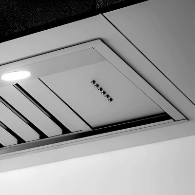 A szűrőrendszer, amely professzionális 304 rozsdamentes acélból készült és labirintusszűrőkből áll, amelyeket úgy terveztek, hogy a főzési gőzök által termelt zsírokat leválasszák és visszatartsák, egy tálcán belül továbbítják és összegyűjtik, így garantálva az optimális légáramlást, valamint a ventilátor hosszabb élettartamát és hatékonyságát. Mind a labirintusszűrők, mind a zsírgyűjtő tálca könnyen eltávolítható és mosogatógépben mosható. A led világítás intenzitása és színtónusa egyaránt állítható az otthoni környezetnek megfelelően.