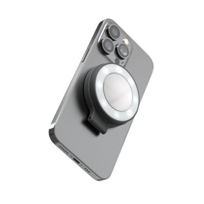 Funkció áttekintése LED-gyűrű a jelenet megvilágításához, amikor okostelefonnal fényképez és videóz Gyors és biztonságos beállítás a MagSafe mágnesrendszerrel vagy egy mágneses matricával (tartozék) Négy fényerőszint Rugalmas használat különböző szögekben Tükörrel felszerelve a keret könnyű középre állításához szelfikhez Töltés USB-A porton keresztül Kompakt méret, könnyű és hordozható Szín: sötétkék