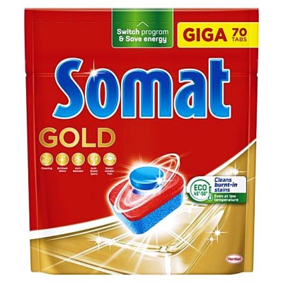 Somat Gold: Erőteljesen lép fel az odaégett szennyeződésekkel szemben még alacsony hőmérsékletű Eco & rövid mosogatási programokban is. A Gold tablettánk egy gyorsan oldódó mosogatószer tabletta, mely vízben oldódó fóliában van, így használatához nem szükséges kicsomagolni.