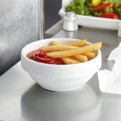 Mert a 50 ml-es porcelán tálka egyszerre praktikus, higiénikus és elegáns. Rakásolható kialakítása miatt könnyen tárolható, és a fehér porcelán színe kiemeli az ételek színét, így vizuálisan is szebb tálalást tesz lehetővé. A vendéglátásban nélkülözhetetlen kiegészítő, de otthon is megállja a helyét.